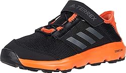 Adidas makes a water shoe for children that looks like a sneaker, with a rubber outsole, but is both waterproof and quick drying. The Adidas Terrex Voyager A RDY CF Water Shoes have easy hook and loop laces so kids can get their shoes on and off quickly.